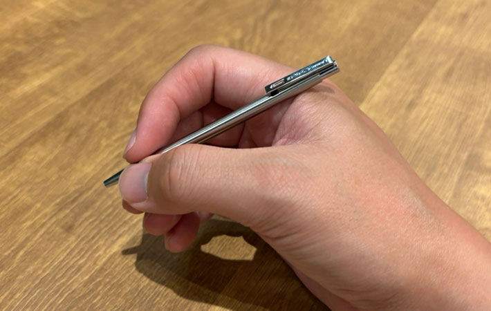 ・胸ポケットにぴったり。サイズのわりにいい書き味だが、落としやすいので注意が必要かも。