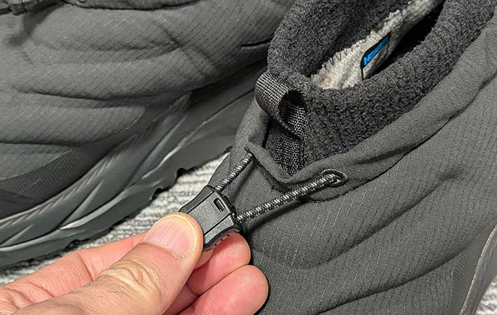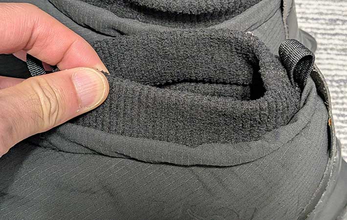 ほかにも、履き口には足首からのすき間風を防ぐストレッチフリースを使用。