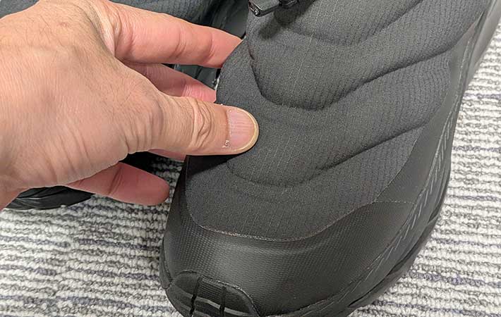 見た感じでは問題ないように見えますが、つま先はかなりタイト。