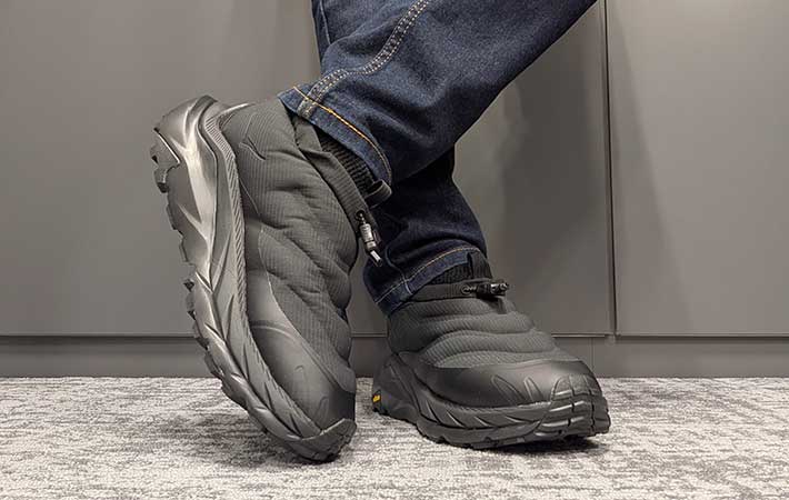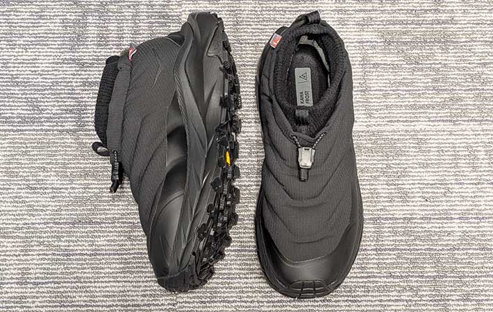 「北海道でも十分に役立つ」 保温力抜群の防寒シューズを履いたら人気の理由がよく分かった ファッション By - プラム 更新:2026-01-14 ※本記事はUPDATEが独自に制作したコンテンツです。また、本記事を経由して商品の購入が発生した場合に、ECサイト等から送客手数料を受領することがあります。 「寝袋を履いているみたいであたたかい」とウワサになっている、真冬にうってつけのシューズがあります。 それが、厚底のランニングシューズで有名な『HOKA(ホカ)』から発売されている『KAHA 2 FROST MOC GTX(以下、カハ2)』です。 Amazonで見る 楽天市場で見る 見た目からしてすでにあたたかそうな雰囲気を醸し出していますが、一体どのようなシューズなのでしょうか。 履き心地やサイズ感、気になる点などをまとめてご紹介していきます。 「まるで履く寝袋」って本当? 履き心地やあたたかさもレビュー! カハ2は寒い季節に対応したスリッポンタイプのシューズ。 一番の特徴は、キルティングパネルにふわふわの中綿を詰め込んだアッパーです。 モコモコな見ため 断熱材が300gも入っているので、足元の保温性はかなり高いと言えるでしょう。 さらに防水性や防風性、透湿性に優れた『GORE-TEXメンブレン』を使用。 雨や雪をがっちりとガードしつつも、蒸れにくい快適な履き心地を確保しています。 ゴアテックス仕様 ミッドソールはホカらしい厚みのあるタイプ。 つま先も角度がついているため、体重を前にかけるだけで自然と足が前に進みます。 厚底タイプ かなり歩きやすい アウトソールはトレイル対応の『Vibram® Megagrip』を採用。 凹凸のはっきりとしているパターンは悪路でもしっかりと路面を掴み、安定した歩行を可能にしてくれます。 雪で歩きにくくなった道でも安心して履けそうです。 ごつめのアウトソール ほかにも、履き口には足首からのすき間風を防ぐストレッチフリースを使用。 手袋をしていても着脱のしやすいクイックレーストグルクロージャーを採用するなど、細かいところまで作りこまれています。 実際、どのような履き心地なのかを確かめてみましょう。 安定感もあたたかさも完璧! ただサイズ選びは… カハ2を履いてみて、最初に感じたのは高い安定感です。 ミッドソールが足よりも大きく張り出しているため足がぐらつきにくく、硬めのアウトソールがしっかりと路面をキャッチしてくれるのでグリップ力も良好。 クッション性は硬めながら適度にあり、ヘタに足がぶれないので安定して歩くことができました。 先述したようにつま先に角度がついているのもポイントで、足を前に出しやすくグイグイと歩くことができます。 グリップ力も高いので、濡れた路面や雪道などでも十分に活躍してくれるでしょう。 履き口のストレッチフリースも真冬の装備としては最適です。 冷たい風や雨が靴の中に入ってこないのはもちろん、体温であたためられた空気も逃げ出さないので保温力が抜群。 モコモコのアッパーとともに、足元をあたたかく保ってくれますよ。 機能性の高いカハ2ですが、筆者的に気になった点もあります。 それがサイズ感です。 ジャストサイズが26.5cmの筆者ですが、カハ2は「ちょっと大きめのほうが履きやすい」という話を聞いていたので、ハーフサイズアップして27cmで履いてみました。 見た感じでは問題ないように見えますが、つま先はかなりタイト。 歩いていない状態でもつま先が先端に当たっています。 足の形状や履く靴下にもよりますが、ワンサイズくらいはアップしたほうが無難でしょう。 口コミでのカハ2の評価は? 「北海道でも十分に役立つ!」 筆者的にはカハ2を履いていて気になったのはサイズ感くらい。 カハ2を愛用している人たちからは、どのような評価を受けているのでしょうか。 ・保温性が高くてあたたかい!雪の上でのグリップもバッチリだった。 ・ショートタイプなので深雪には使えないが、北海道でも十分に役立つ! ・スニーカーとは比べ物にならない保温力! ・思ったよりあたたかいし、なにより歩きやすくて驚いた。 寝袋を履いているかのような足元のあたたかさにハマっている人が続出。 雪国でも十分に使える性能を備えていると高評価のようです。 ホカのカハ2は寝袋並みのあたたかさ まとめ 真冬のシューズにうってつけのカハ2を体験。 アッパーの印象から受けるイメージの通り保温力は高く、足場の悪い路面でも安心して歩ける安定感が魅力の一足でした。 履いてみれば「寝袋を履いているよう」「北海道でも十分に役立つ」という声にも納得ができるでしょう。 冷たい雨が降っても、雪が降っても、安心して使える一足があるというのは心強いもの。 人気の商品で在庫も少なくなってきているようなので、気になった人は早めにチェックしておいてくださいね。 Amazonで見る 楽天市場で見る [文・構成/UPDATE編集部] 出典 Amazon/楽天市場 関連ワード シューズホカ(ホカオネオネ)検証 この記事をシェアする Share Post LINE