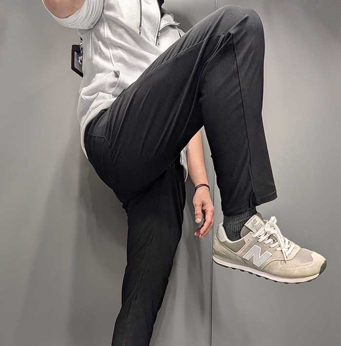 ・これをはいて会社に行っているけど、周りにストレッチパンツだとはバレていない。