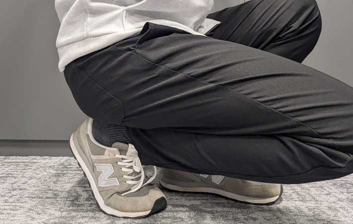 立ったりしゃがんだりしても問題なし!スーツはもちろん、デニムなどと比べてもかなり動きやすく感じました。