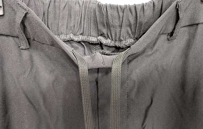 ウエストは紐で調節可能ですが、ベルトループもついているのでベルトの着用も可能。
