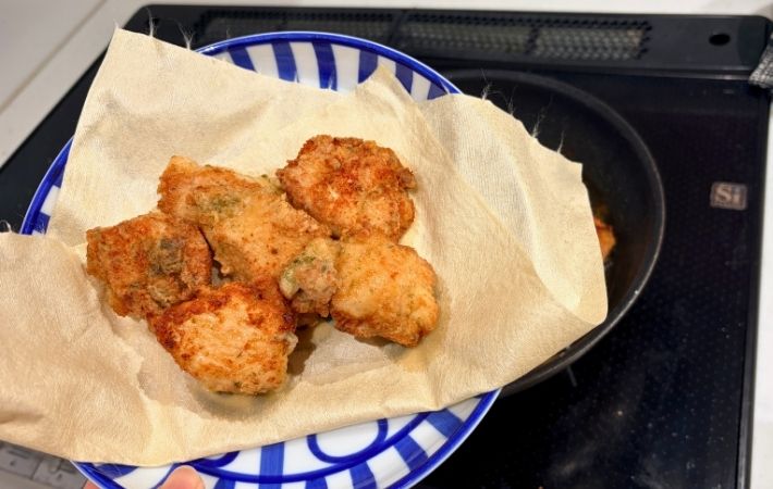 キッチンペーパーだと、衣にくっついてしまって取りづらいことがありますが、このキッチンシートはそういったストレスがほとんどありません。