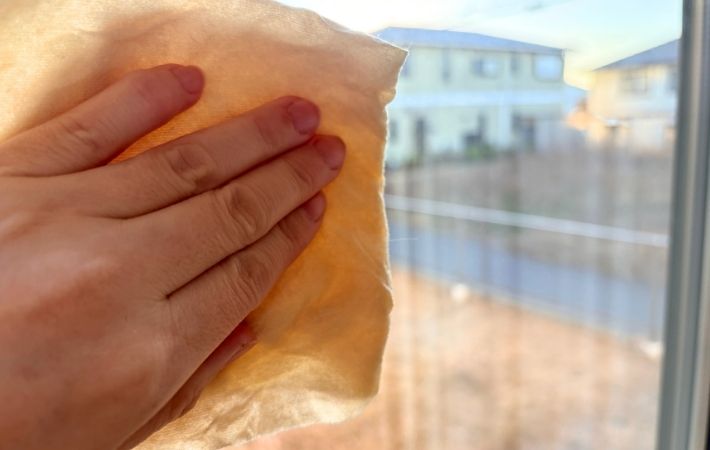 紙のようなガサガサ感がなく水垢も残りにくいと感じたので、「もしかして窓拭きに向いているかも」と思い、試しに使ってみました。