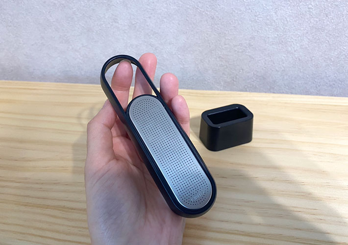 サイズは幅13cmx奥行3.5cmx高さ1.6cmほどで、手のひらに収まるほどコンパクト。スリムで場所を取らないので収納棚の中にもスッと収まります。