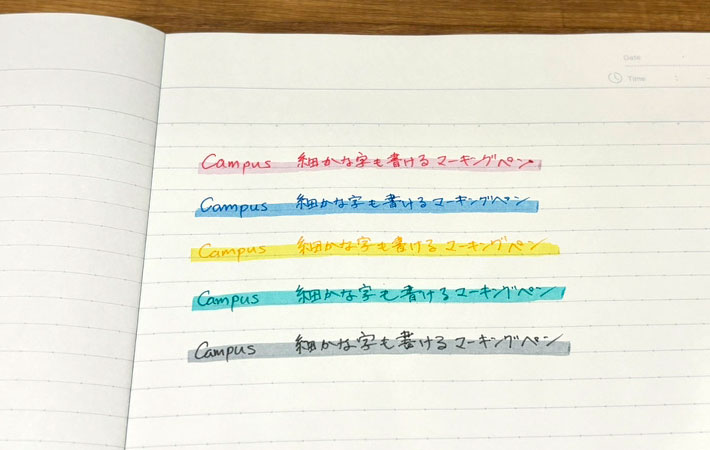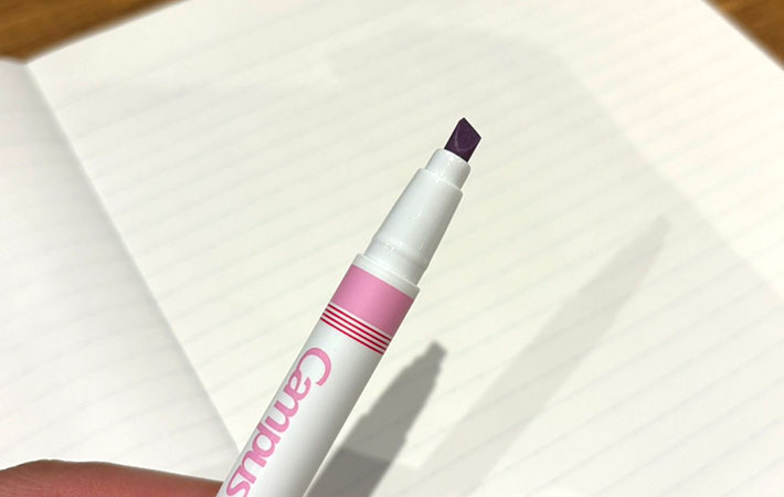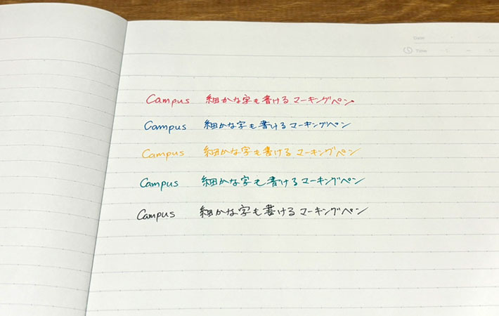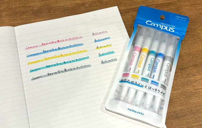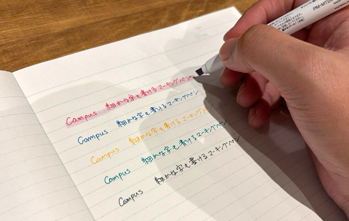 2つのペンで濃淡をつけることにより、1本でノートの整理がスムーズに。これこそ『Campus 細かな字も書けるマーキングペン』の特徴で、さすがコクヨといったところでしょう。