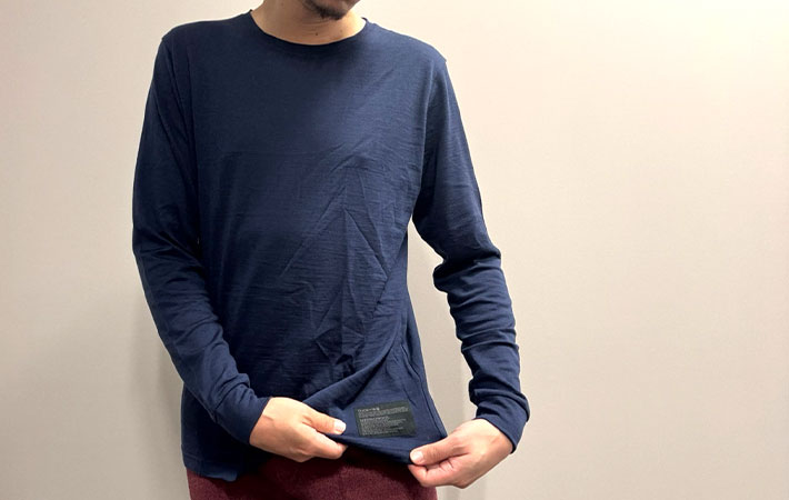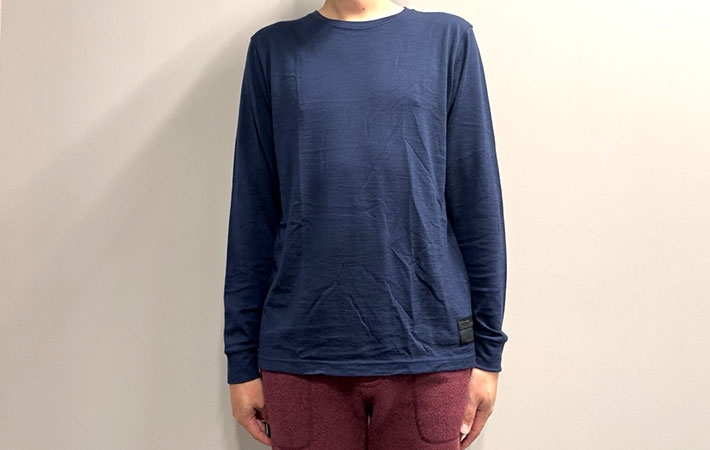筆者は『メリノウール アンダーウェア ロングスリーブ Tシャツ』を、普段よりワンサイズ大きめで購入。