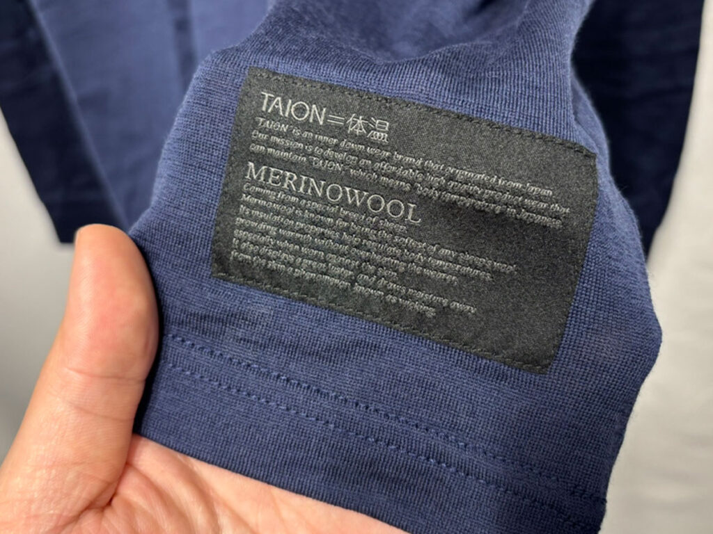 そんな人におすすめしたいのが、インナーダウンを中心に展開しているファッションブランド『TAION(タイオン)』の『メリノウール アンダーウェア ロングスリーブ Tシャツ』です。