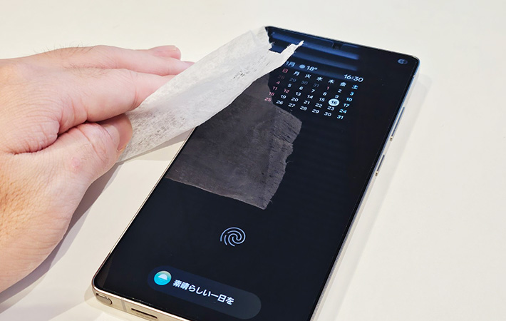 液量が少なくても汚れを落とす力は十分。画面についた指紋も軽く拭くだけできれいに落ち、画面がクリアな状態に戻るので、使い心地も快適です。