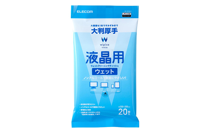液晶画面を安全に掃除するには、専用のクリーナーを使うのがおすすめです。筆者は、『ELECOM(エレコム)』の『液晶用ウェットクリーニングティッシュ』を使っています!