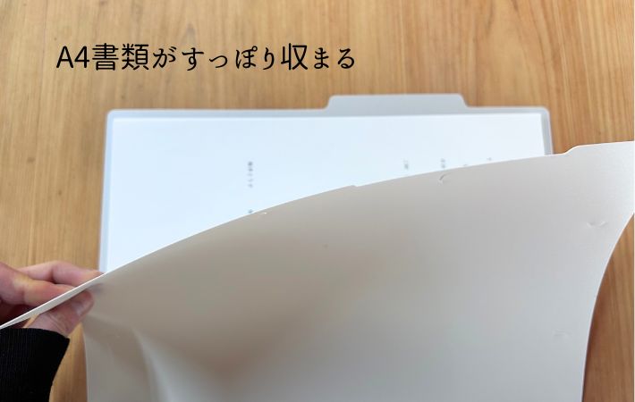 小さくて大丈夫?と心配してしまうかもしれませんが、A4サイズの書類がはみ出すことはありません。