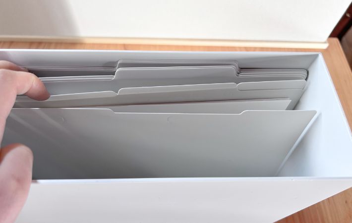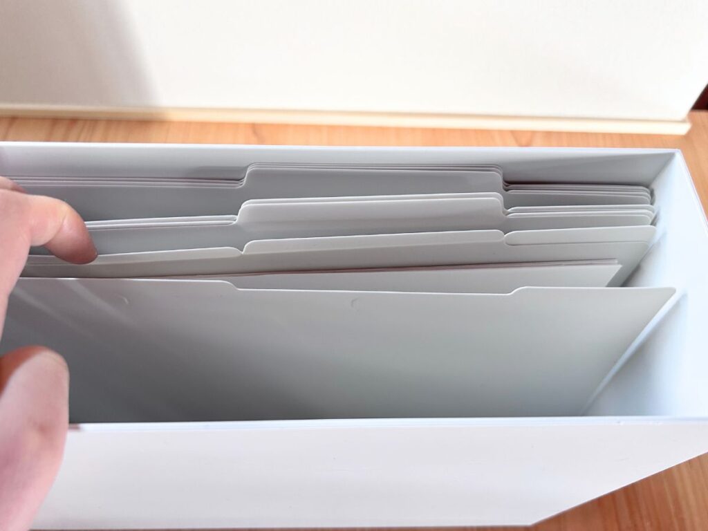 見た目が整うだけでなく、出し入れもしやすく、「無印のファイルボックスと一緒に使う前提で作られているのでは?」と思うほどの相性のよさでした。