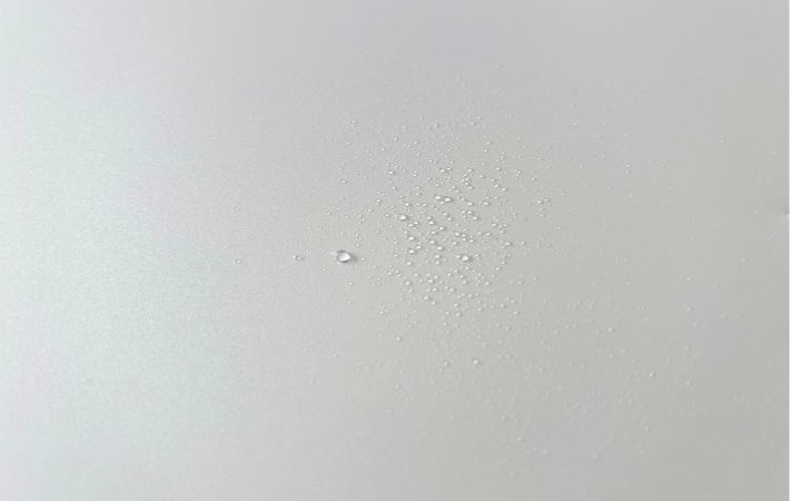 さらに、水をはじくのも嬉しいポイント。うっかり水滴がついたり、飲み物をこぼしてしまったりしても、サッと拭き取るだけで解決します。