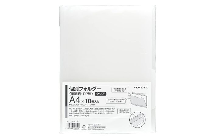 Amazonで『コクヨ(KOKUYO) 個別フォルダー PP製 A4 10冊セット 半透明クリア AMA4-IFP-10T』を見る
