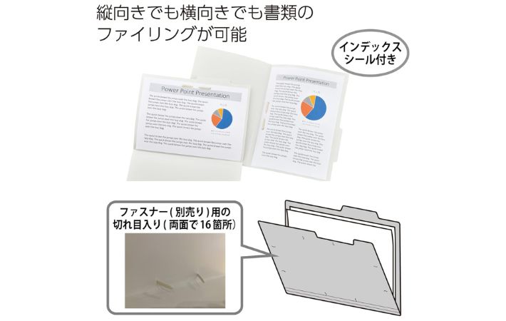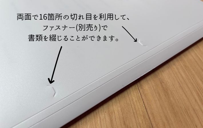 また、別売りのファスナーを組み合わせれば書類をしっかり綴じて管理することが可能。
