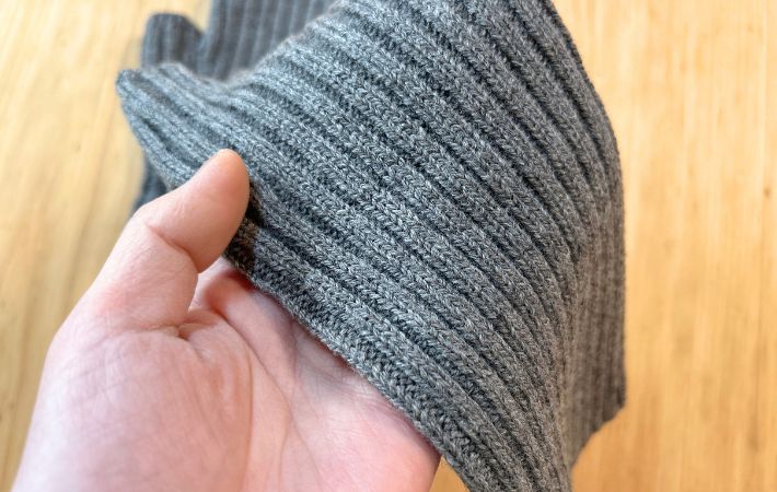 ウール100%の程よいあたたかさと、表情のあるリブ編みによる抜群のフィット感。