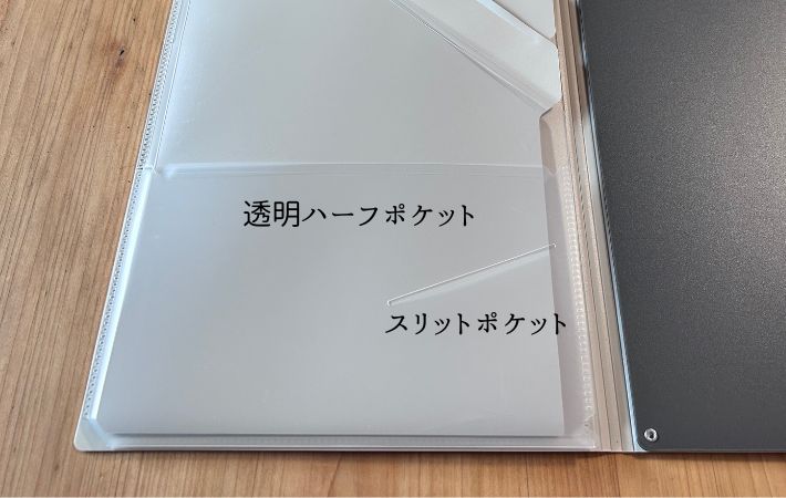 裏面にもポケットがあり、何冊もファイルを用意したりしなくても、すべてこのホルダーで管理できそうです。