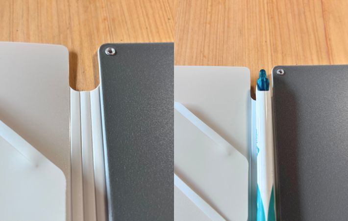 右側はデスクがない場所でも書きやすい厚めのボードになっています。