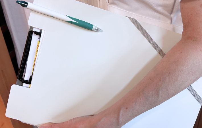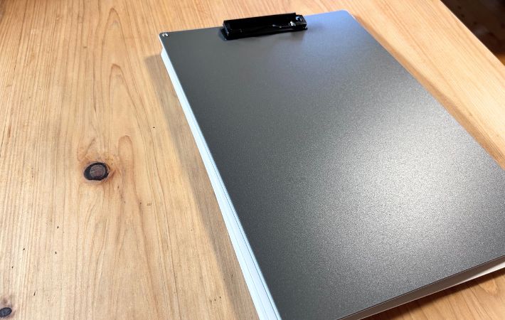 しっかりとしたボードがついているため、立ったままでも文字が安定し、書類がよれることがなかったそうです。