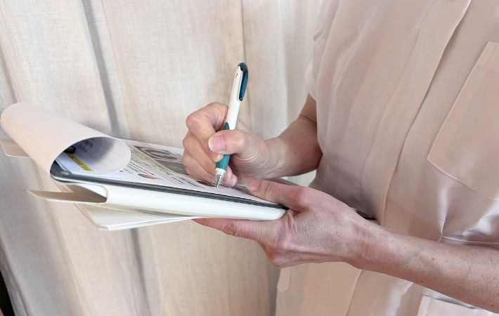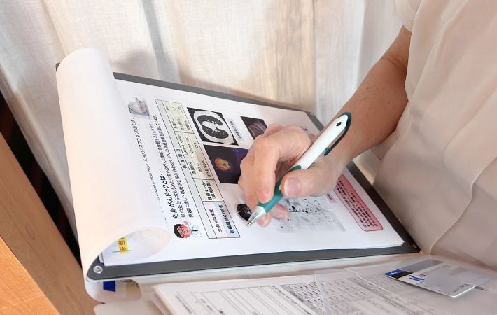 診察室の移動中やベッドサイドなど必ずしも机が使えない場面が多い医療現場でも、「これなら問題なく書ける」と感じたそうですよ。