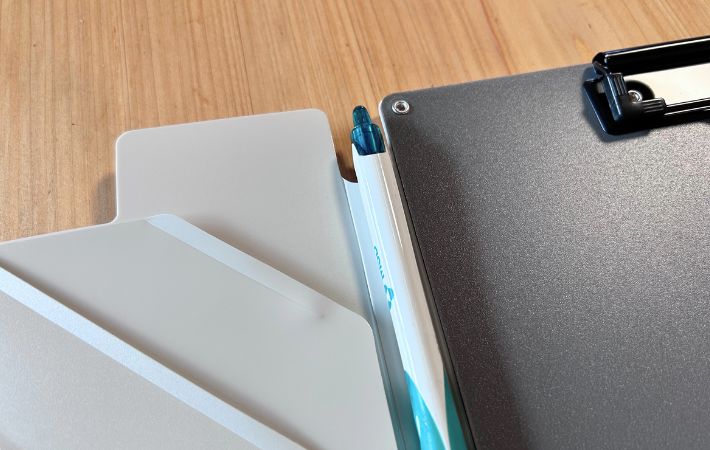 ペンも一緒に持ち歩けるため、外出先や立ったままの記入作業でも困らずに使えます。