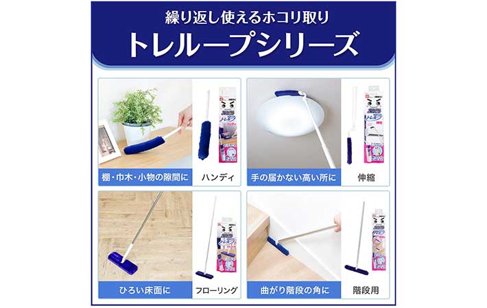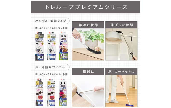 『高密度ブラシ トレループ』のハンディ伸縮タイプは、最長約97cmまで伸ばせて、高い所のホコリを根こそぎキャッチしてくれる優れもの。