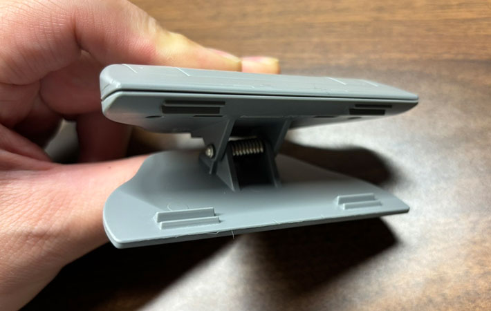使い方はいたってシンプル。『terasuno』はクリップ型になっているので、まずは読みたい本を挟みます。