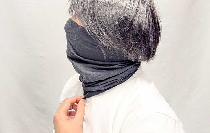 長さがあるため、たたんで二重にしたり、上部を引っ張って鼻や耳まで覆うマスクにしたりして使うこともできます。