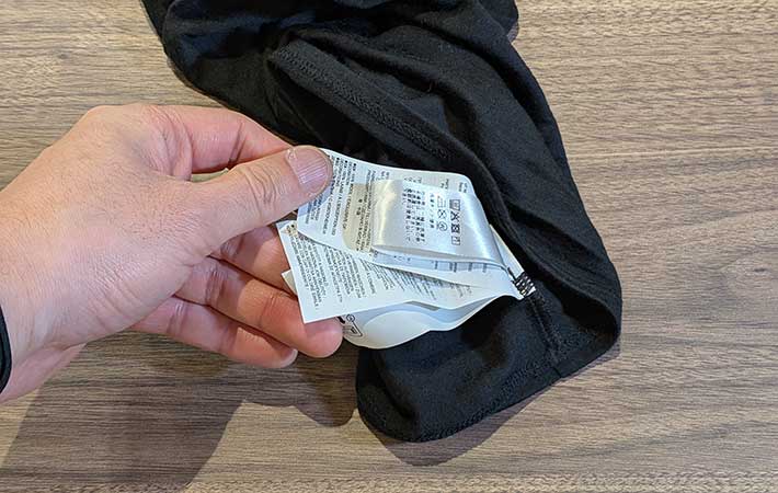 せっかく肌触りのいいメリノウールを使っているのに、このタグのせいで首元に違和感が出ます。