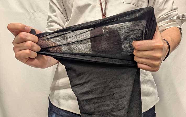 生地自体はかなり薄手なので、長くても折りたためばかなり小さくなり、上着のポケットなどに入れておくことも可能です。