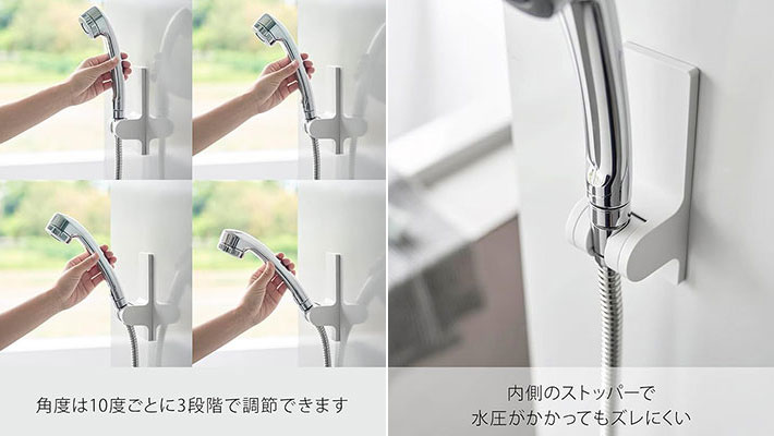 好きな位置にペタッ!角度が調節できるシャワーホルダー