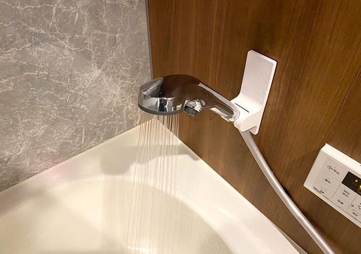 両手を使って髪の毛を洗い流したい時、つけ置き洗いで浴槽にシャワーで水を溜めたい時など、用途によって微妙に角度と位置を調節できるのが意外と便利なんですよね。