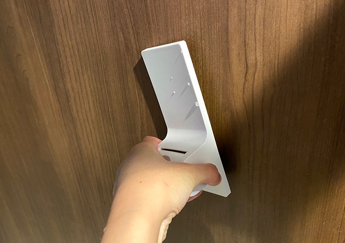 裏返すと、面いっぱいの大きいマグネットと滑り止めを装備。ラバータイプのマグネットなので、サビにくく、壁も傷つけにくいのが嬉しいポイントです。