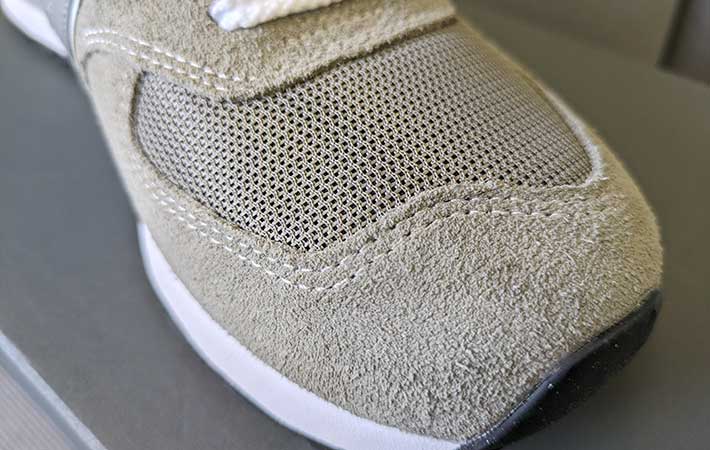 アッパーは天然皮革のスエードとメッシュの組み合わせ。