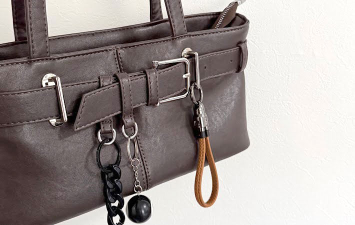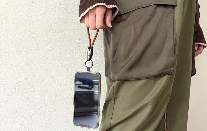 また、スマホだけでなく、キーケースやバッグに直接取り付けることも可能。