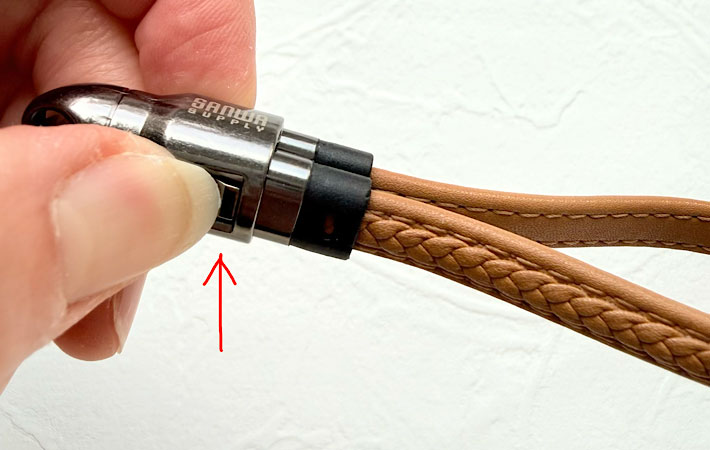 手首にかけることはできないので、持つ時は指に引っ掛けて使います。