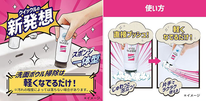 洗剤・スポンジ一体型になっているので、とにかく手軽に洗面ボウルの掃除ができるのが魅力のアイテム。