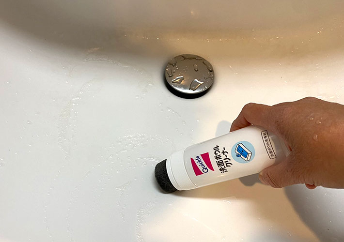 その最大の魅力は、洗剤やブラシを別で用意しなくても、これ1つで洗面ボウルの掃除が完結してしまうこと!