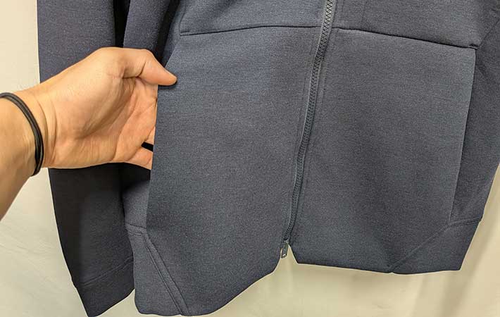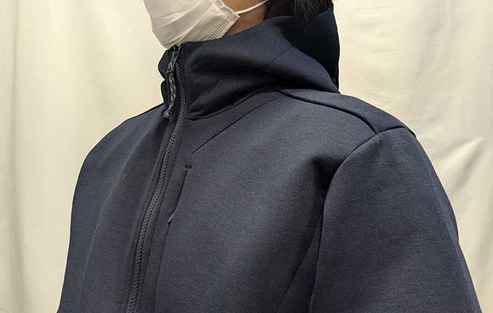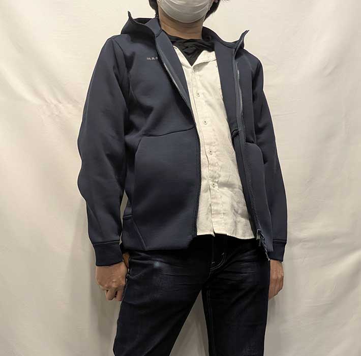 肌触りはよく、生地に厚みがあるため風も防ぎやすいのは見た目通り。中間着としては十分なあたたかさです。