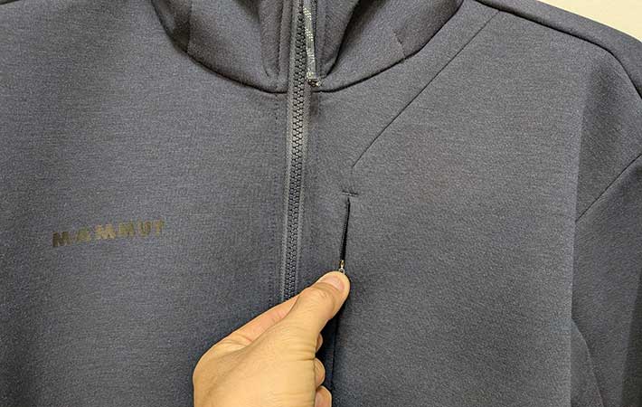 胸元に目立たないジッパーつきのポケットを装備しているところが、アウトドアメーカーのウェアっぽいところ。