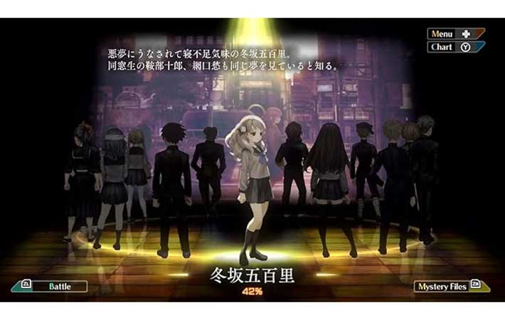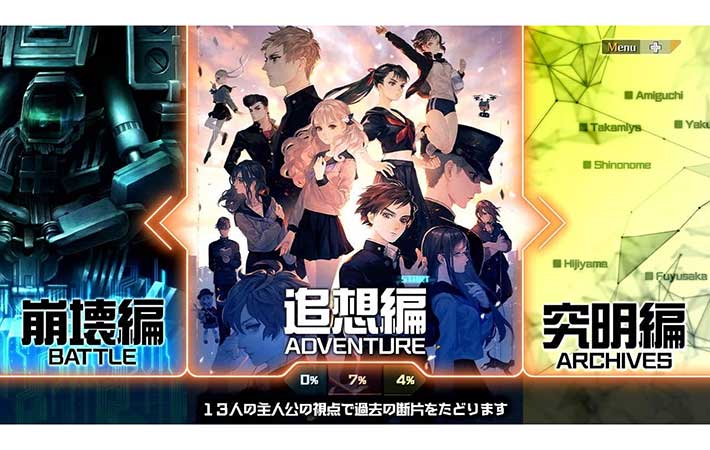 アドベンチャー部分は、13人いる主人公から好きなキャラクターを好きな順番で選び、10分前後の短いストーリーを進めていく方式。