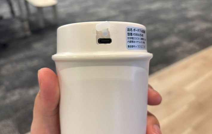 内容量は400mLで、内蔵バッテリーを使用するか、コンセントなどにつないで連続使用することができます。