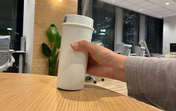 ・片手で持てるコンパクトデザインの加湿器は新鮮。無音なので枕元で使っても大丈夫。