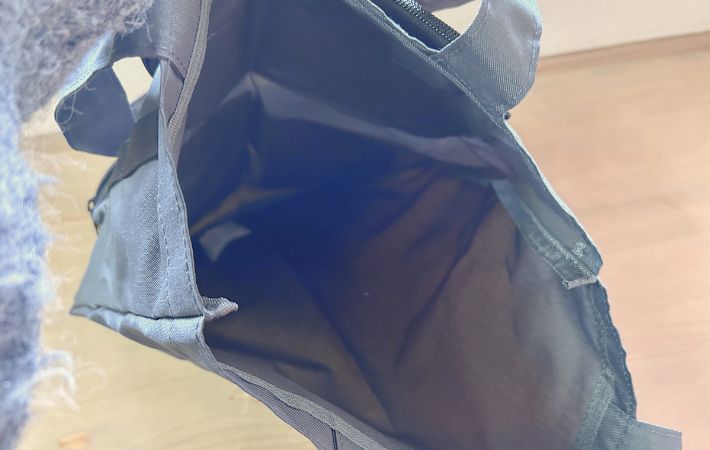 ただ、開け口にファスナーがついていないのが残念なところ。また、内側にはポケットはついていません。