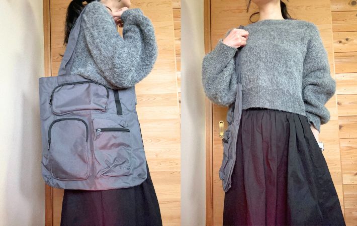 とは言え、モコモコしたアウターを着ている状態でも無理なく肩掛けできたため、大きな不便さを感じることはありませんでした。