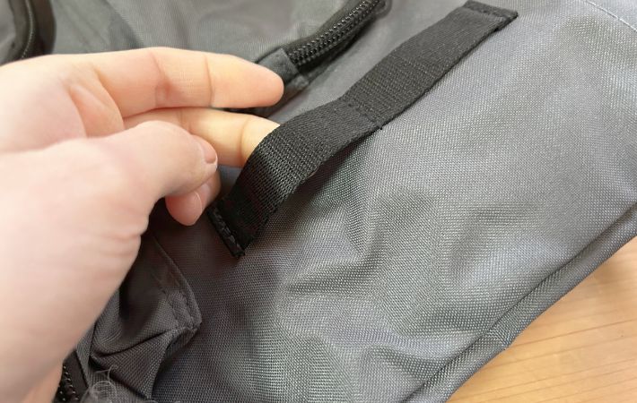 バッグのサイドにはキーホルダーやカラビナを引っかけられるウェビングテープがついています。