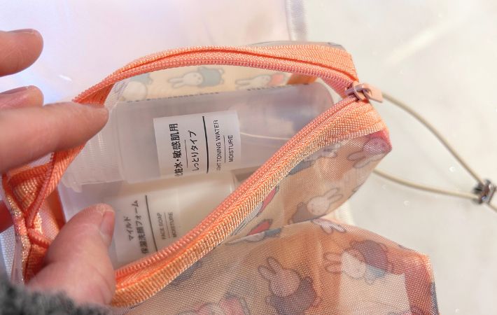 洗面用具やコスメは、このポーチ1つにまとめて持ち歩けそうです。