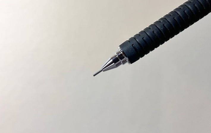 一般的なシャープペンとは少し違い、定規を使った製図作業も想定して『4mmのスリーブ』を採用しているのがポイント。