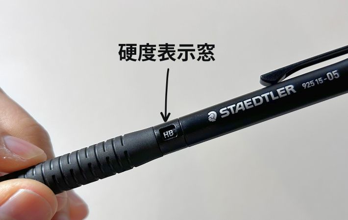 また、芯の硬さを確認できる硬度表示窓が搭載されていて、どの硬さの芯が入っているか一目で確認できます。